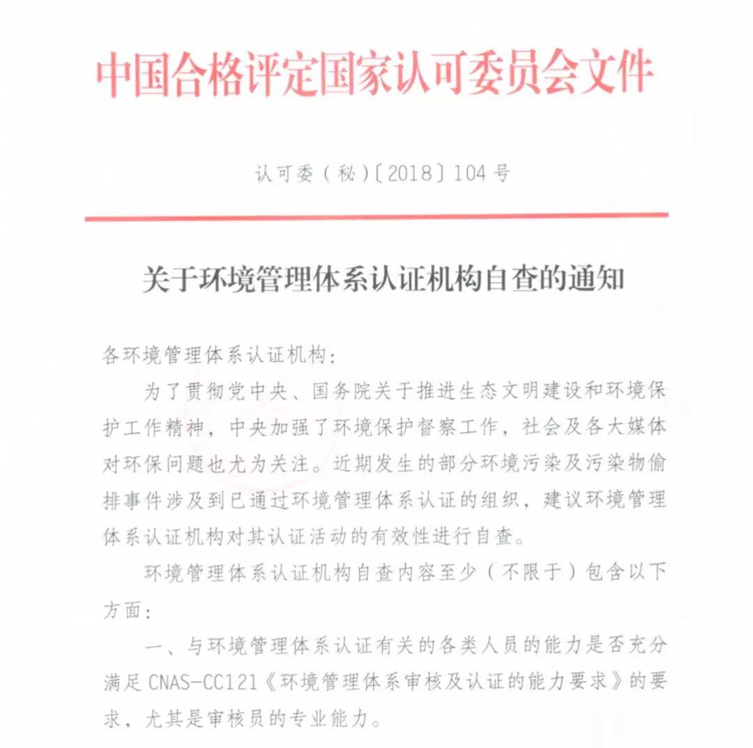 蘇州iso認證公司注意 | 你有一份環(huán)境管理體系認證機構(gòu)自查通知,請查收!